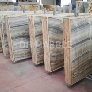 Gray onyx is a semi-precious natural stone. It is preferred by architects in aesthetic decorations with its light transmittance. This natural stone is produced in black as well as gray. Dark and light colored patterns appear on the gray type, which attracts great attention, as if they were drawn by hands. When illuminated from behind, an aesthetic design emerges with these different color tones.