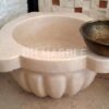 Specially designed marble basin is preferred for nostalgic decoration of bathrooms. The basins used in Turkish baths are also used in bathrooms with nostalgic decorations. The manufacture of this handmade basin is determined in accordance with your bathroom. Made of light beige marble, the basin is designed in the shape of a half moon. It narrows as it descends and has patterns in the form of inwardly inserted slices.